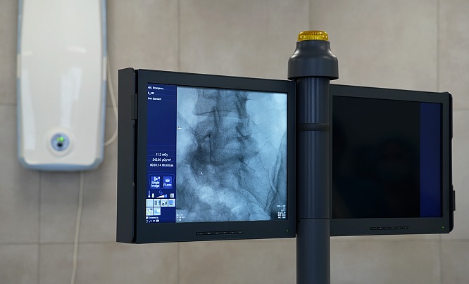 Эпидуральная блокада – это введение лекарственных препаратов в эпидуральное пространство поясничного или крестцового отдела позвоночника. В результате блокируются корешки спинномозговых нервов. Эпидуральное пространство расположено между твёрдой мозговой оболочкой и надкостницей позвоночного канала. Для максимальной точности и эффективности процедура проводится под визуальным контролем.