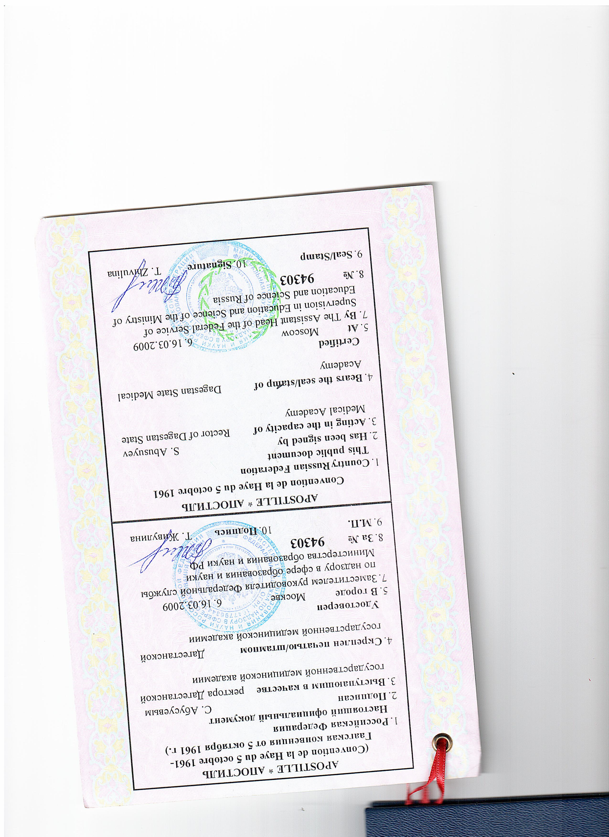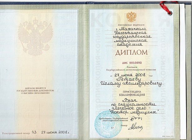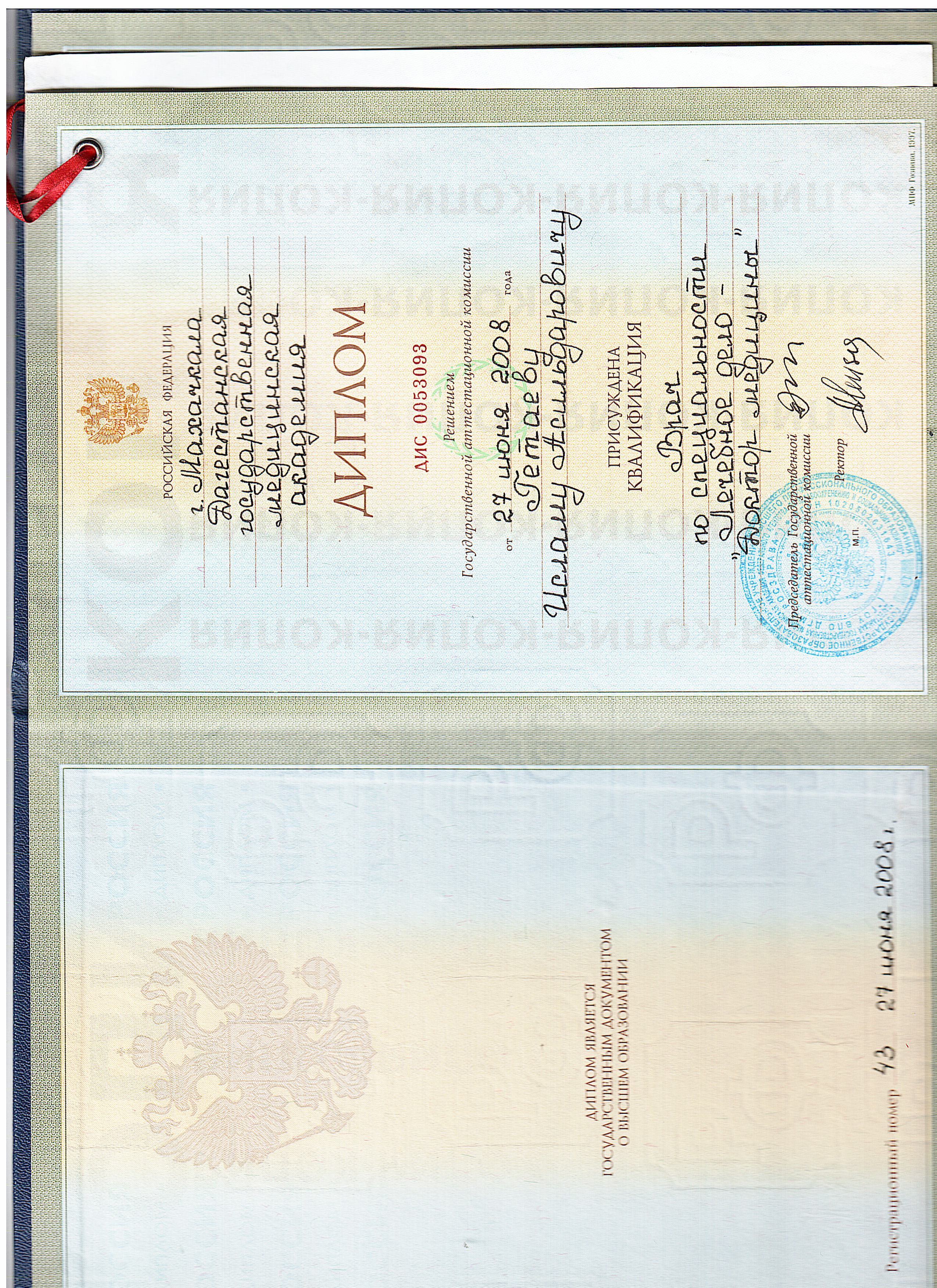 - 2008 г. - ДГМА (Дагестанская Государственная Медицинская Академия), лечебный факультет.
