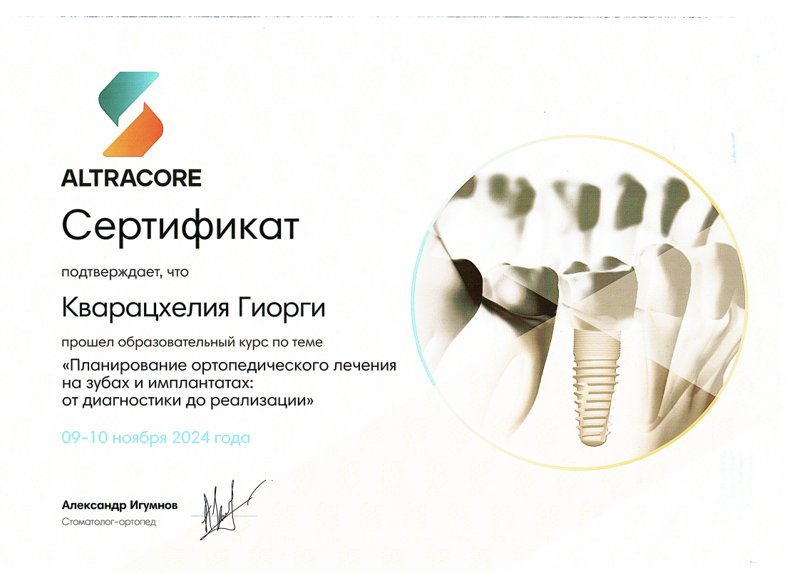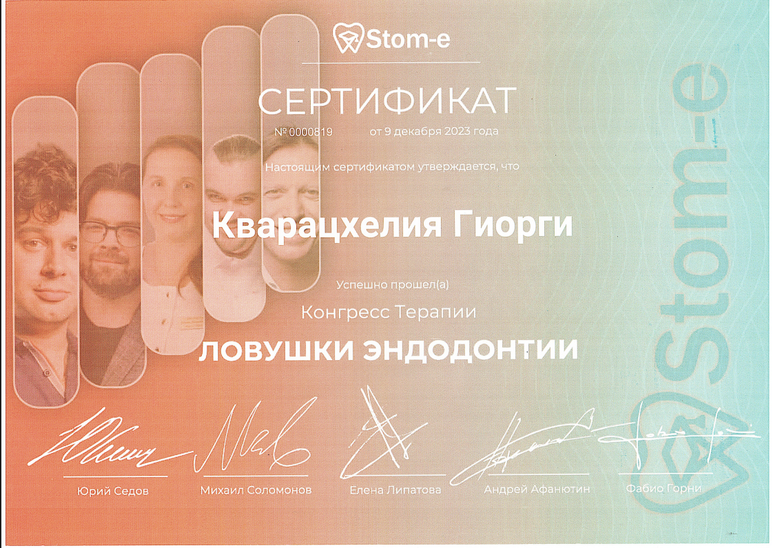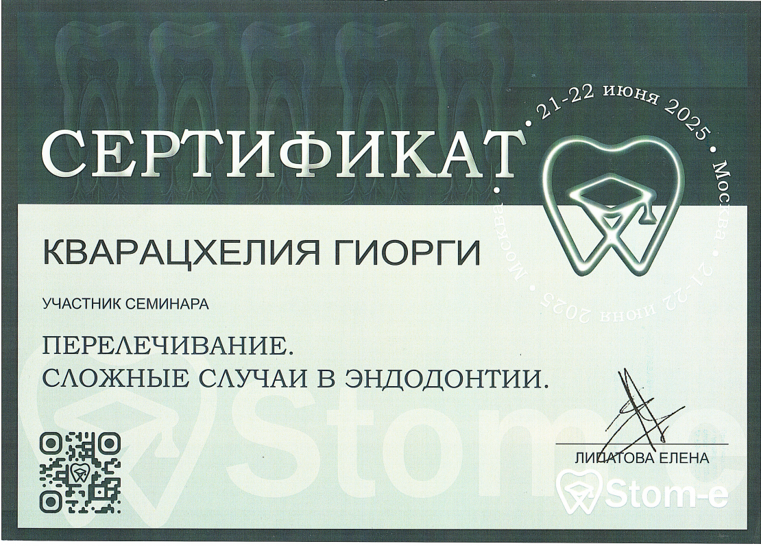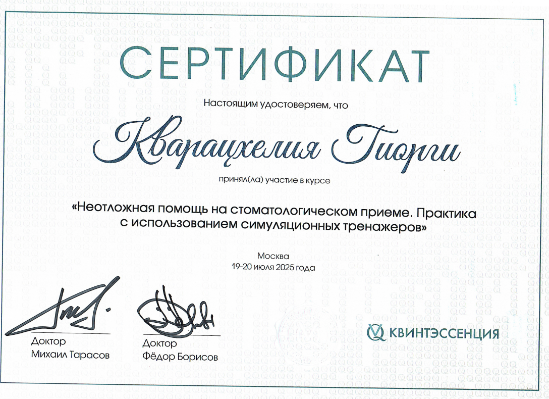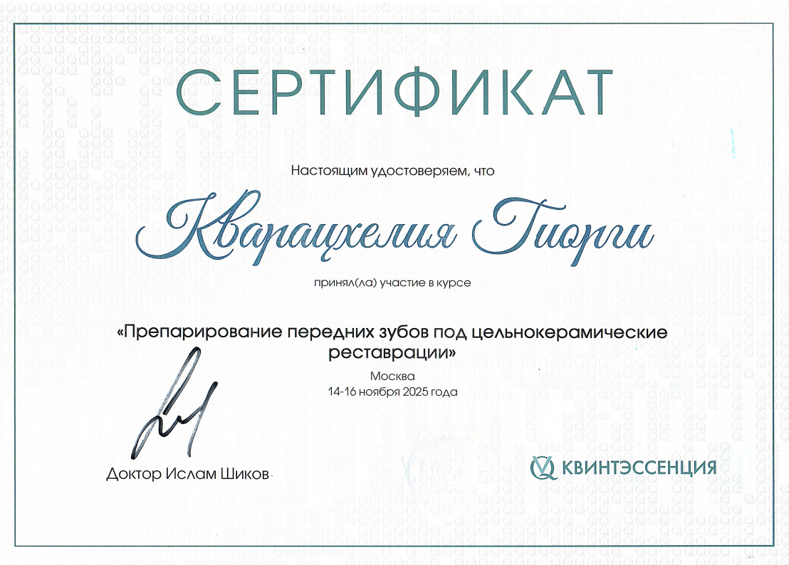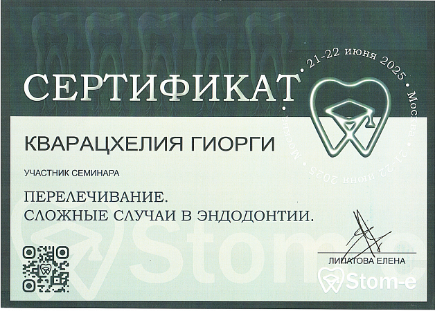 - 2016 г. - Международный Стоматологический Центр Албиус, Ординатура, Тбилиси, Грузия.