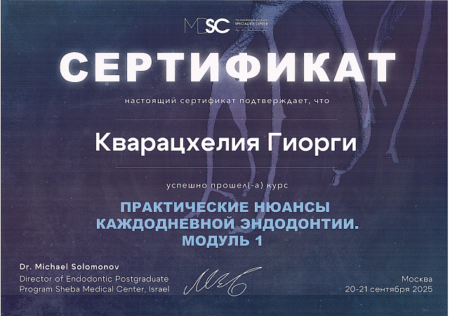 - 2024 г. - Курс “Лечение апикальнрго периодонтита”, Москва, Россия.