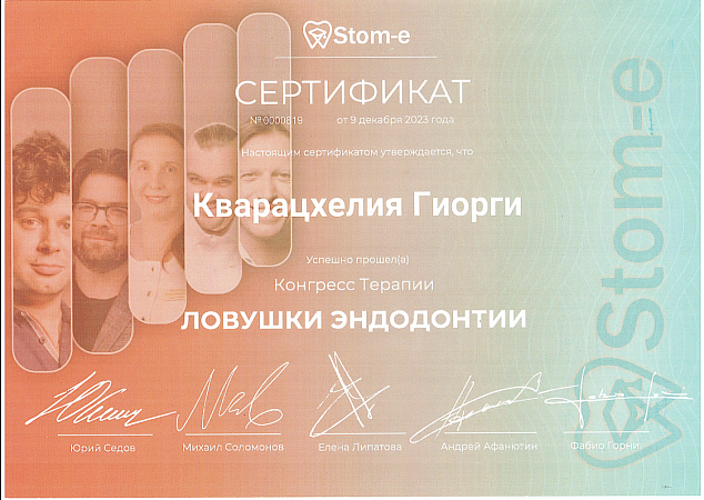 - 2023 г. - Международный Стоматологический Конгресс “Малоинвазивные методики в эндодонтии и реставрации”, Москва, Россия.