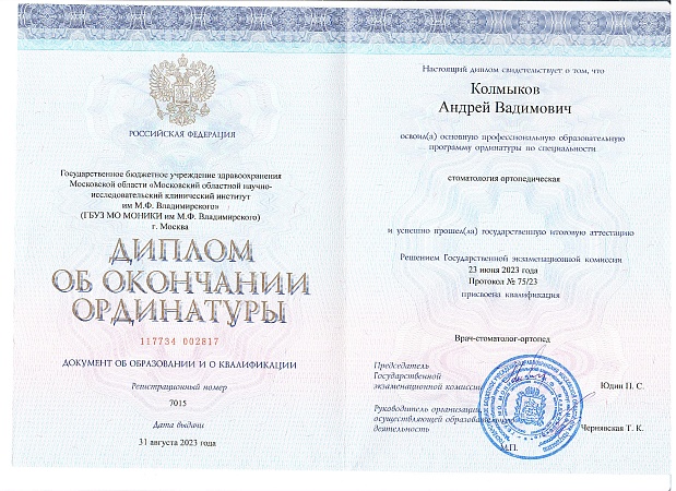 Колмыков Андрей Вадимович - врач-стоматолог-ортопед с многолетним медицинским стажем.