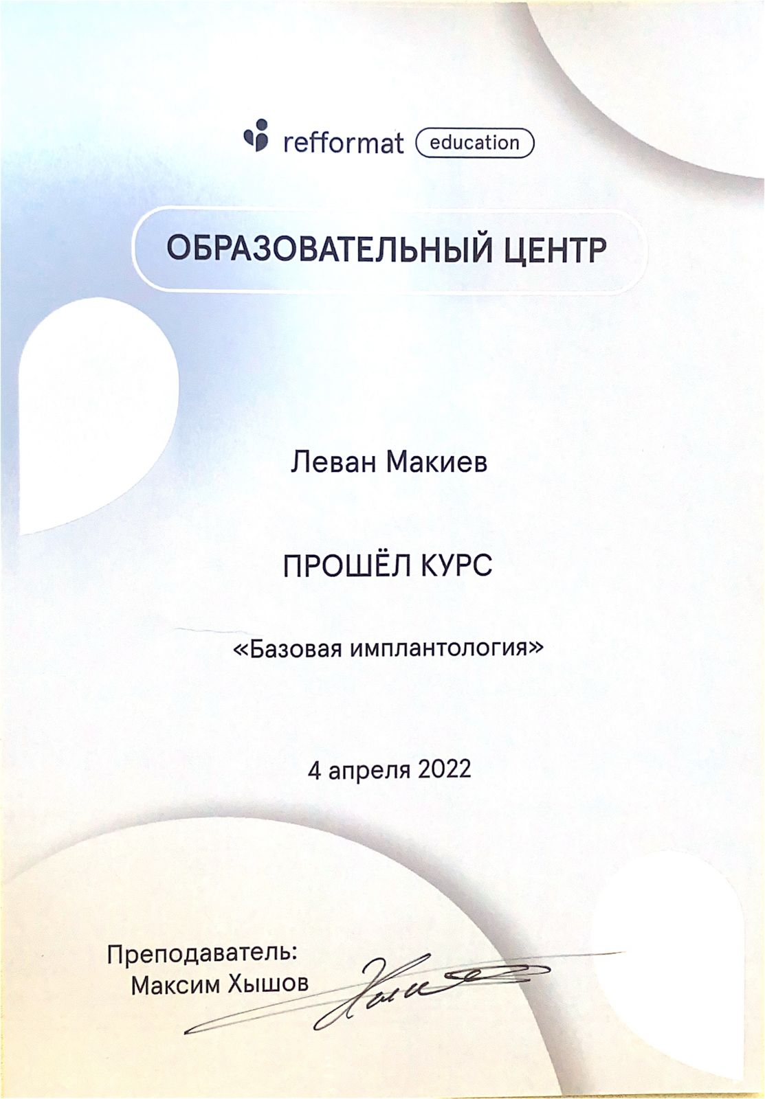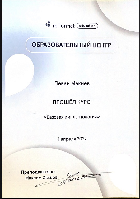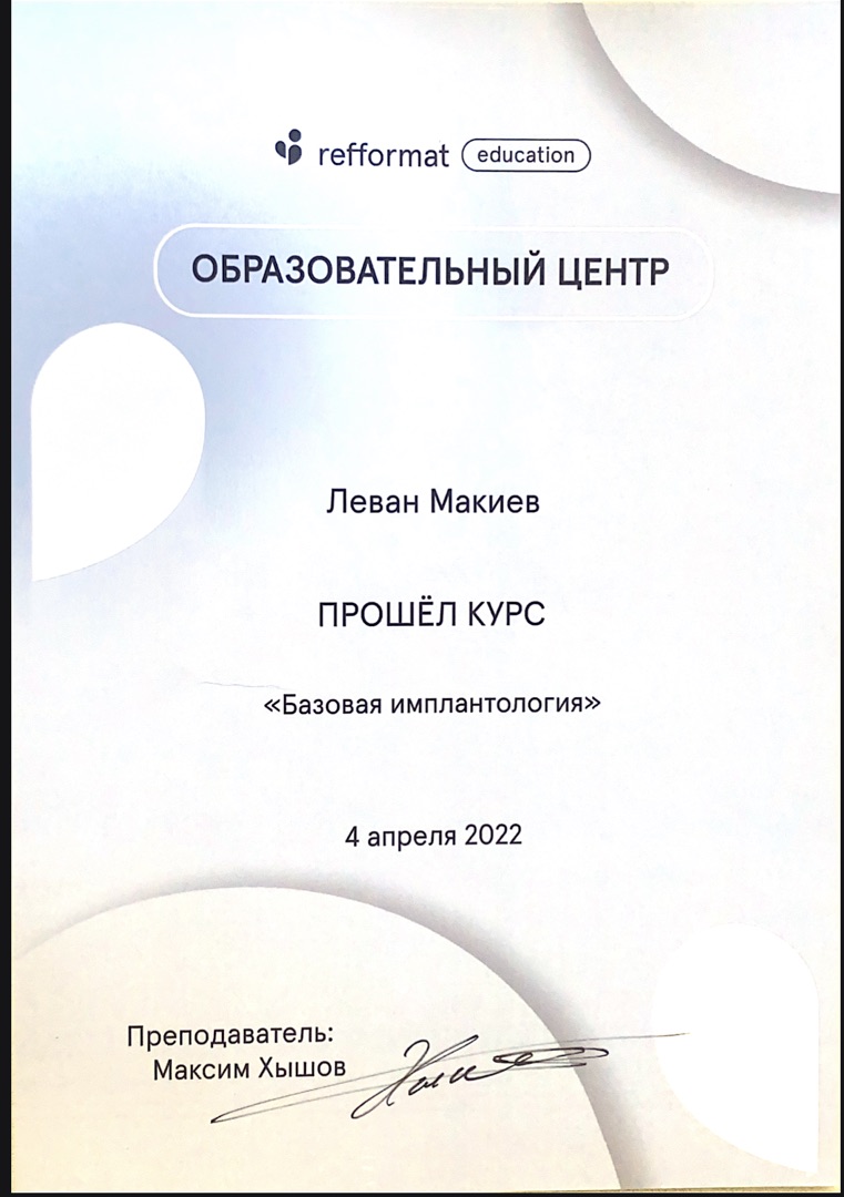 В 2022 г. проходил повышение квалификации по программе « Базовая имплантология».