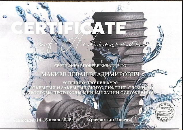 В 2023 г. проходил повышение квалификации по программе «Синус-лифтинг» клинические этапы.