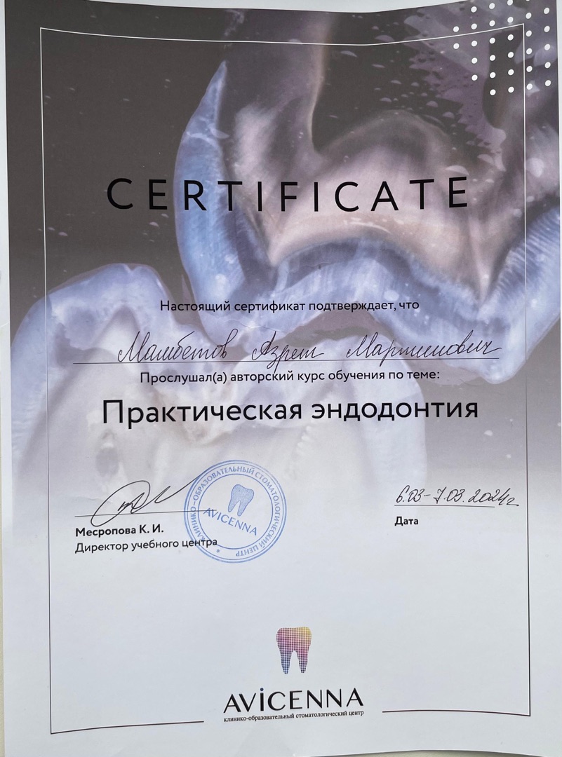 - 2018 г. - КБГУ Институт стоматологии и челюстно-лицевой хирургии.