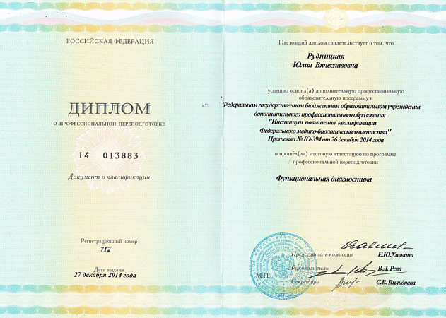 - "Функциональная диагностика", Институт повышения квалификации ФМБА России (2014 г.)