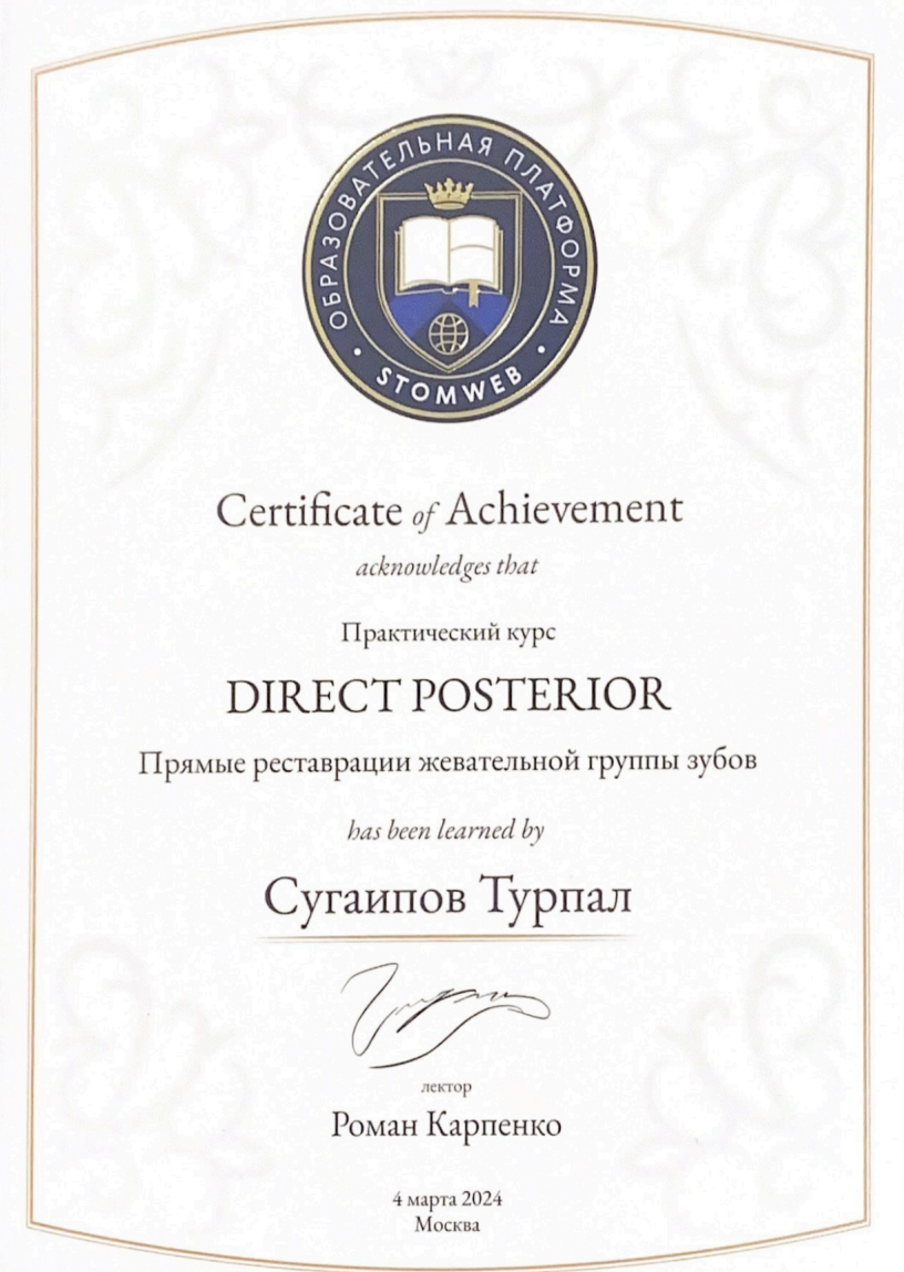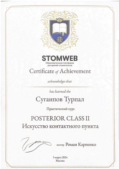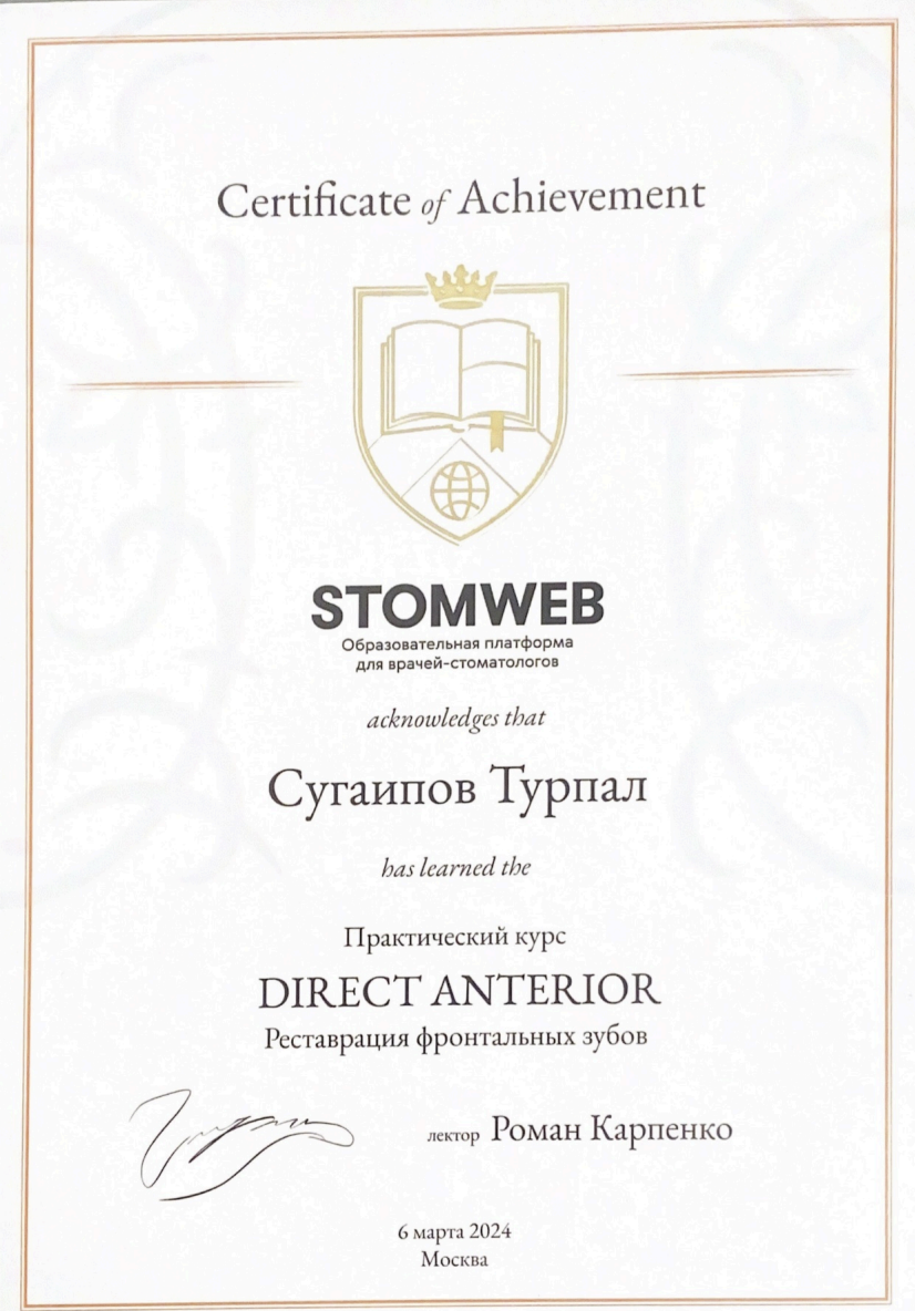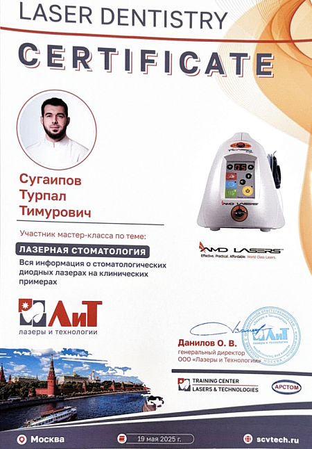 Регулярно посещает стоматологические курсы и вебинары для повышения профессионального навыка.