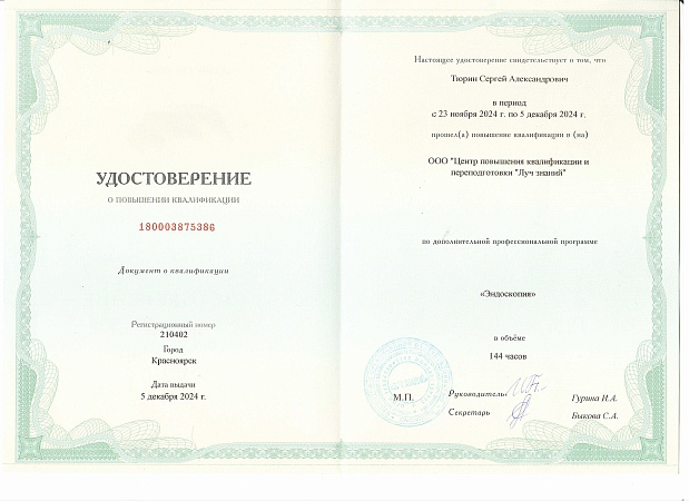 Делала гастроскопию был врач Тюрин Сергей Александрович,учитывая что процедура не самая приятная,все прошло спокойно и безболезненно,спасибо большое!